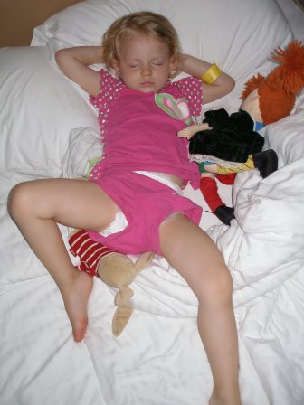 När jag höll på att byta kom det en städerska och skulle byta soppåsen som fanns bakom mig där alla blöjor slängs. Hon bara stod och tittade på mig säkert 20 sekunder. Därefter gick hon till Sveas klassrum och sade till Sabine, en av Sveas lärare. Sabine kom med snabba steg bort till mig tätt följd av två maider och undrade vänligt varför jag inte sa till någon av maiderna att byta på Svea. Jag försäkrade att det inte var någon fara, att jag bara ville få bytt innan vi gick därifrån.